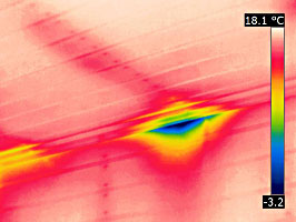 ![]() Дефект теплоизоляции стены каркасного дома | ![]() Недостаточная толщина стен (тепловое проявление радиатора отопления) |